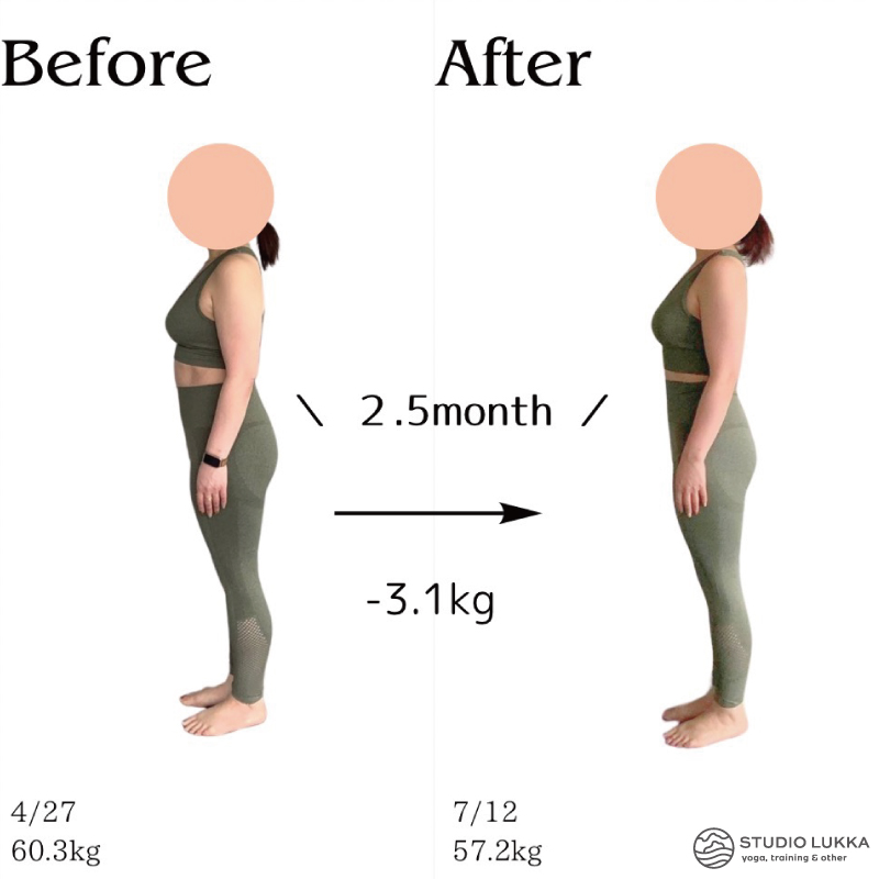 40代 主婦週に一回のペースで通い始め、4ヶ月で約8キロ落ちました。毎日鏡を見たり、自分の身体に意識を向けることを楽しめるようになりました。
